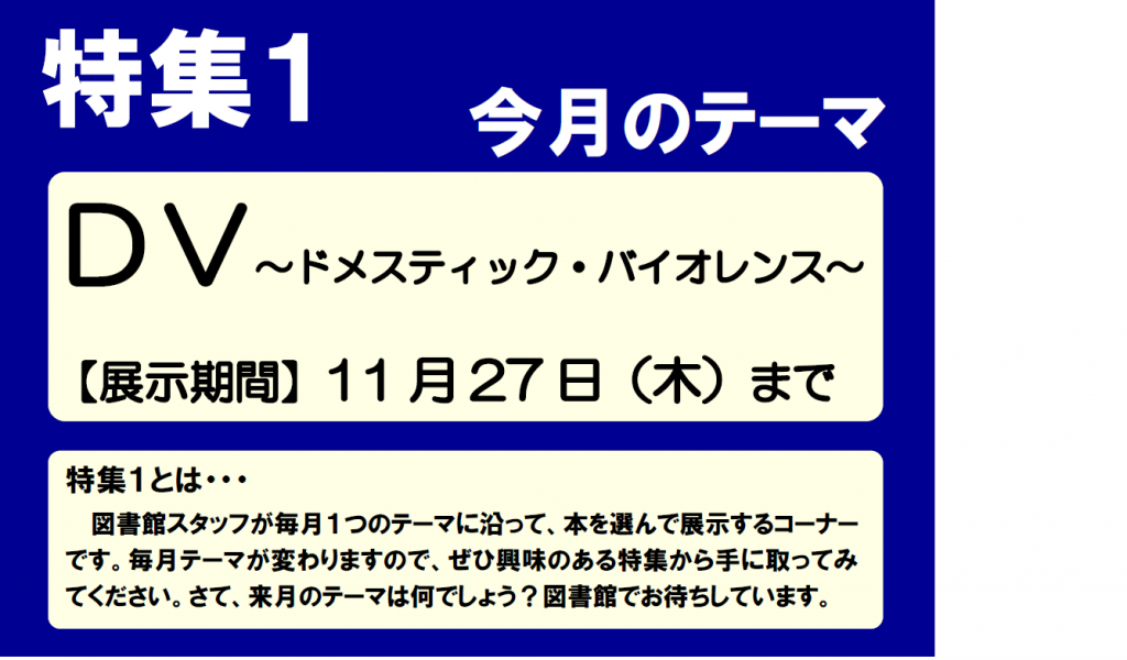 | 内容 | DV ドメスティック・バイオレンス特集 |