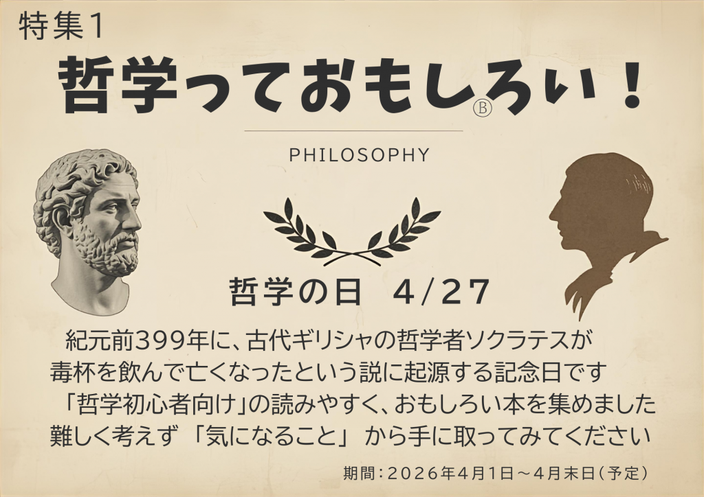 *「特集1」の棚は図書館スタッフが毎月1つのテーマに沿って、本を選んで展示するコーナーです。毎月テーマが変わりますので、ぜひ、興味のある特集から手に取ってみてください。さて、来月のテーマは何でしょう?新たな本との出会いを探しに来てくださいね。来月もお楽しみに。図書館でお待ちしています