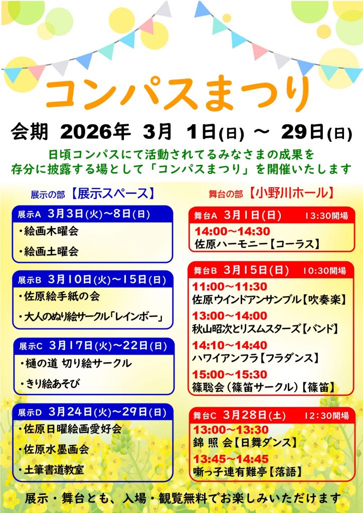 コンパスご利用団体様による展示物や発表、各種体験イベントなど、見どころ満載です。