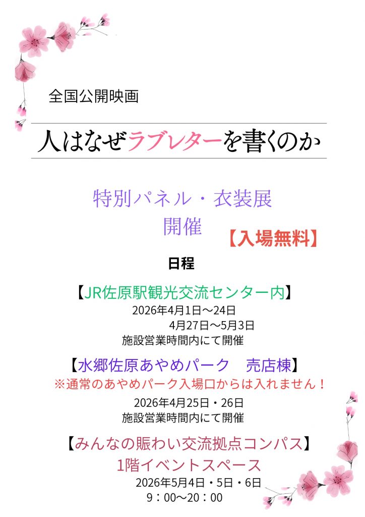 全国公開中の映画、「人はなぜラブレターを書くのか」のロケ地にもなった香取市で、特別展を開催します。
